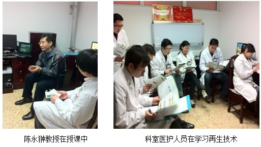 培訓會結束后,丁主任做了總結發(fā)言。丁主任對陳教授來院授課表示了深深的謝意,并要求科室的醫(yī)護認真學習再生技術,提高業(yè)務技能。同時表示,將盡快把再生技術和產品引進醫(yī)院,爭取早日為患者造福??剖遗嘤枙跓崃业恼坡曋薪Y束。