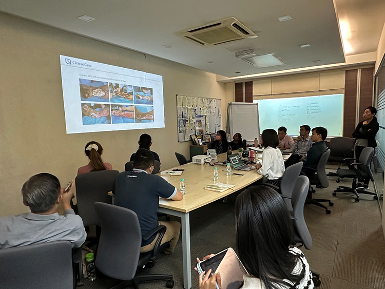 7月4日下午,培訓(xùn)周最后一站在雪蘭莪州新開(kāi)設(shè)的Sunway Medical Centre Damansara落地舉行。Sunway集團(tuán)旗下的多家分支醫(yī)院采用再生醫(yī)療技術(shù)治愈燒傷病人已久,因此在Damansara地區(qū)開(kāi)設(shè)的新院區(qū)建院已始便引入MEBO作為重要的治療手段。此次培訓(xùn)聚焦燒傷患者,術(shù)后創(chuàng)口管理與糖尿病足等慢性難愈合傷口的治療,獲得醫(yī)護(hù)團(tuán)隊(duì)的一致認(rèn)可。
