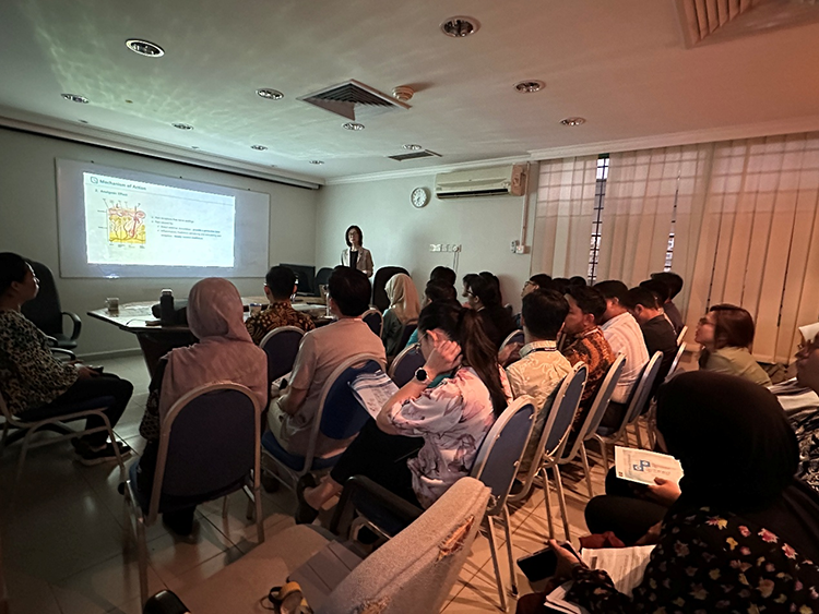 當(dāng)日下午,美寶團(tuán)隊(duì)南下馬六甲的仁愛(ài)醫(yī)院(Mahkota Medical Centre)迎來(lái)藥劑師專(zhuān)場(chǎng)培訓(xùn)。作為南馬地區(qū)最大的私立醫(yī)療機(jī)構(gòu)之一,該院積極響應(yīng)此次培訓(xùn),因場(chǎng)地限制,主辦方同步開(kāi)放線上參會(huì)通道,除藥劑師外吸引超20位院內(nèi)多科醫(yī)護(hù)人員參與。課程圍繞再生類(lèi)藥品的作用機(jī)制、用藥管理與患者教育展開(kāi),推動(dòng)“藥學(xué)服務(wù)+療效管理”理念落地。