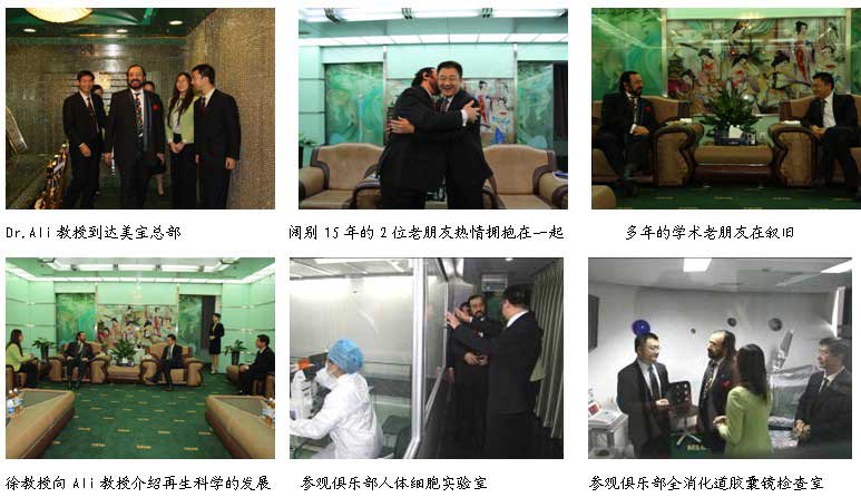2009年11月12日上午10時,Dr.Ali教授應(yīng)邀來到了人體生命再生科學(xué)發(fā)源地——美寶國際集團(tuán)總部參觀考察,徐榮祥教授在貴賓室熱情接見了這位多年的學(xué)術(shù)老朋友。Dr.Ali教授是再生醫(yī)學(xué)的忠誠追隨者和實(shí)踐家,他自1996年與燒傷再生醫(yī)學(xué)技術(shù)創(chuàng)始人徐榮祥教授結(jié)識,開始致力于燒傷再生醫(yī)療技術(shù)的臨床研究與應(yīng)用,成功運(yùn)用該技術(shù)救治了大量中小面積的燒傷患者和一些嚴(yán)重的創(chuàng)瘍患者,取得了良好的治療效果,先后在國際專業(yè)期刊上先后發(fā)表了多篇有關(guān)燒傷再生醫(yī)學(xué)的論文,在燒傷再生醫(yī)學(xué)領(lǐng)域具有較深的造詣,在阿聯(lián)酋和中東具有較高的學(xué)術(shù)地位和影響力。會面期間,徐教授與Dr. Ali教授一起追憶了燒傷皮膚再生研究的發(fā)展歷史,徐教授向其介紹了生命再生醫(yī)學(xué)與科學(xué)近年來在燒傷皮膚再生以及整個人體再生復(fù)原科學(xué)領(lǐng)域的喜人進(jìn)展與成就,共同暢談了再生醫(yī)學(xué)與科學(xué)的未來發(fā)展,在科學(xué)和學(xué)術(shù)的高度上達(dá)成了共識。會談結(jié)束后,在徐教授的親自陪同下,Dr. Ali教授饒有興致地參觀了美寶人體再生復(fù)原俱樂部、人體細(xì)胞研究所、全消化道膠囊鏡等。中國燒傷創(chuàng)瘍科技中心臨床部陳永翀教授在美寶集團(tuán)總部多功能廳用多媒體生動地向Dr. Ali教授展示了再生醫(yī)學(xué)在胃腸組織器官再生、斷指再生和治療癌癥方面取得的新進(jìn)展。整個訪問、參觀過程中,Dr. Ali教授對再生醫(yī)學(xué)、科學(xué)取得的新成就表示出濃厚的興趣和完全的折服,并不止一次感嘆:從與徐教授結(jié)識的第一天起,對徐教授提出的關(guān)于皮膚再生、以及其他方面的新觀念、新理論和臨床結(jié)果都堅(jiān)信不疑,盡管當(dāng)時一些關(guān)于機(jī)理的問題還沒有定論,但他始終相信那只是時間的問題。今天能夠見到徐教授,他不僅得到了以前遺留問題的最終答案,并看到了再生科學(xué)的飛速發(fā)展,更加堅(jiān)定了他為該科學(xué)獻(xiàn)身的決心。期間,國際部孫霞總經(jīng)理也熱情接見了Dr.Ali教授,并就下一步阿聯(lián)酋及中東地區(qū)的再生醫(yī)學(xué)科學(xué)的學(xué)術(shù)發(fā)展與醫(yī)療開發(fā)工作進(jìn)行了認(rèn)真的商談,具體討論了下階段的發(fā)展計(jì)劃。