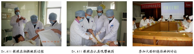 2009年11月16日下午,Dr. Ali結(jié)束了2009年北京國際微創(chuàng)外科大會的學(xué)術(shù)演講后,便啟程趕到了山東省泰安市,開始了對泰山醫(yī)學(xué)院附屬醫(yī)院的參觀、考察和學(xué)術(shù)交流之旅。泰山醫(yī)學(xué)院附屬醫(yī)院對Dr.Ali的到來也非常重視,業(yè)務(wù)院長胡建功教授親自組織安排了這次國際學(xué)術(shù)交流活動,醫(yī)務(wù)處的楊曉雯處長則認(rèn)真落實(shí)了各項(xiàng)具體的組織、策劃、接待、協(xié)調(diào)以及做歡迎橫幅、發(fā)通知等工作,而燒傷科主任徐西勝、王廣順教授和護(hù)士長公怌欣則動員全科醫(yī)護(hù)人員積極行動起來,做好迎接國外專家來參觀考察和學(xué)術(shù)交流的各項(xiàng)準(zhǔn)備工作,燒傷科里洋溢著節(jié)日氛圍。
