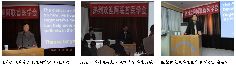 2009年11月11日至11月18日,阿拉伯聯(lián)合酋長國(阿聯(lián)酋)醫(yī)師學(xué)會主席、整形外科學(xué)會主席、迪拜醫(yī)學(xué)院碩士研究生導(dǎo)師Dr. Ali Al Numairy 教授應(yīng)第37屆北京國際微創(chuàng)外科大會和中國中西醫(yī)結(jié)合學(xué)會燒傷專業(yè)委員會的邀請,來到中國進(jìn)行為期一周的再生醫(yī)學(xué)學(xué)術(shù)演講、經(jīng)驗(yàn)交流和考察、學(xué)習(xí)大面積深度燒傷再生治療的學(xué)術(shù)之旅。在短短的一周時間里,Dr. Ali Al Numairy有幸再次見到了中國青年科學(xué)家、燒傷再生醫(yī)學(xué)與人體生命再生科學(xué)的創(chuàng)立人徐榮祥教授,雙方進(jìn)行了廣泛的再生科學(xué)領(lǐng)域的交流,還出席了在北京協(xié)和醫(yī)院舉辦的2009年第37屆北京國際微創(chuàng)外科大會,并在會議上進(jìn)行了燒傷濕潤暴露療法專題演講,引起了全場轟動。隨后,Dr. Ali Al Numairy教授又趕到中國燒傷創(chuàng)瘍泰山醫(yī)院——泰山醫(yī)學(xué)院附屬醫(yī)院燒傷科,參觀考察大面積深度燒傷的皮膚再生治療技術(shù)并進(jìn)行了深入的學(xué)術(shù)交流,整個行程內(nèi)容豐富、精彩紛呈、收獲頗豐!