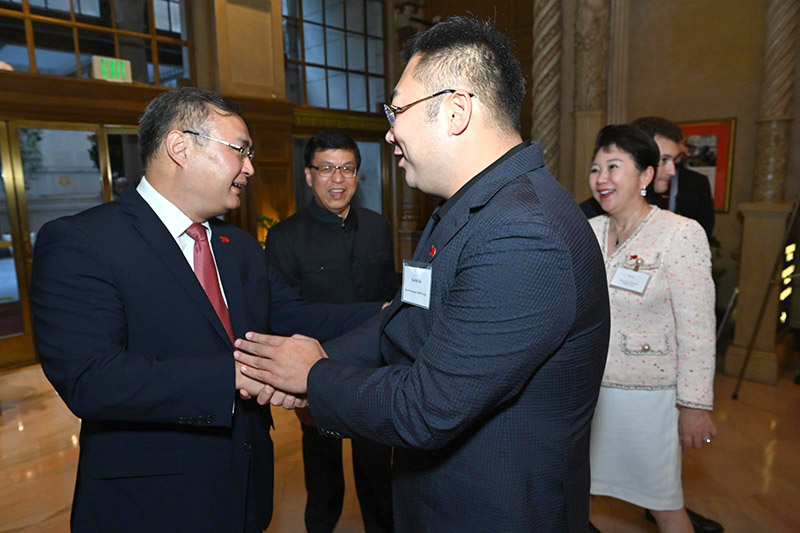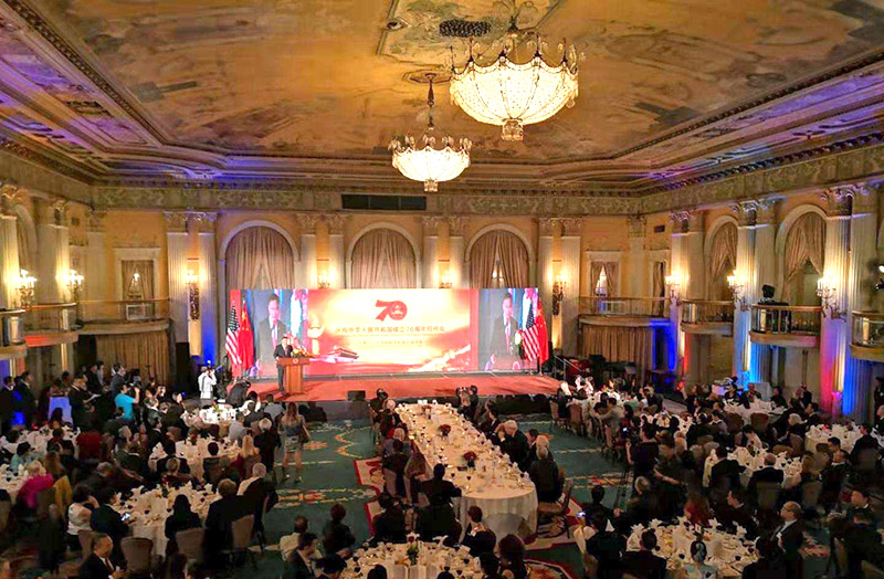 9月25日晚間,中國駐洛杉磯總領(lǐng)館在洛杉磯有百年歷史的千禧酒店舉行中華人民共和國成立70周年第二場招待會。美寶集團董事局徐鵬、李俐應(yīng)邀出席招待會并與張平總領(lǐng)事、多位到訪過北京美寶總部的加州市長、加州議員及國會議員、中領(lǐng)館其他同志們以及其他中外友人共200余人共同慶祝新中國成立70周年,祝福偉大祖國國運昌盛,繁榮富強!招待會現(xiàn)場還舉辦了慶祝中華人民共和國成立70周年圖片展,全方位展示了新中國成立70年來取得的偉大成就。