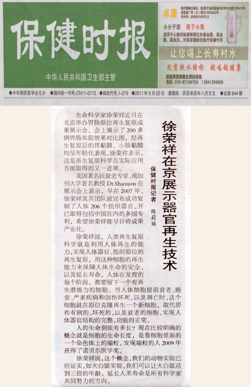 保健時(shí)報(bào):徐榮祥在京展示器官再生技術(shù)