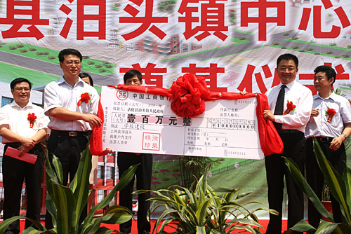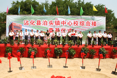 7月6日上午10時,山東省濱州市沾化縣泊頭鎮(zhèn)小學(xué)內(nèi)到處洋溢著熱烈的氣氛,由美寶國際集團董事局主席徐榮祥教授捐資一百萬,當?shù)卣?guī)劃建設(shè)的中心小學(xué)奠基儀式在此隆重舉行。