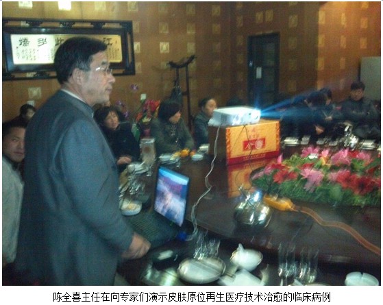 2012年11月4日,中國中西醫(yī)結(jié)合學(xué)會燒傷專業(yè)委員會、北京美寶燒傷創(chuàng)瘍研究所臨床部專家陳全喜和河南技術(shù)推廣責(zé)任人賀杰鋒應(yīng)邀來到了商丘市寧陵縣。下午5點對寧陵縣人民醫(yī)院外科,中醫(yī)院外科、婦產(chǎn)科,婦幼保健院婦產(chǎn)科二十一位科主任護士長進行皮膚原位再生醫(yī)療技術(shù)的培訓(xùn)。