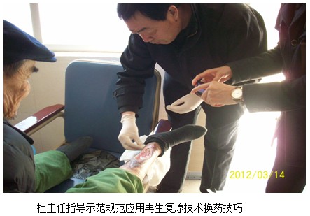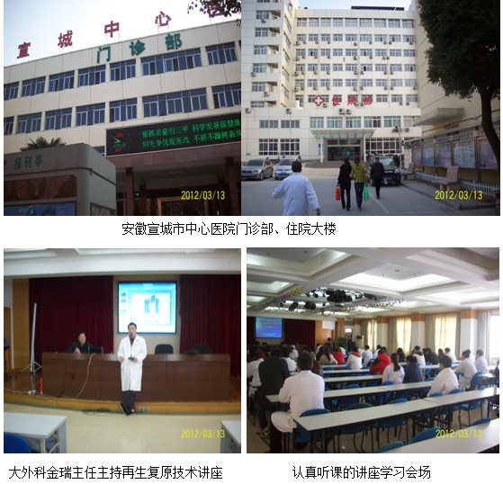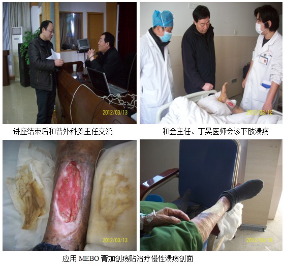 2012年3月13日~14日應大外科金瑞主任和醫(yī)務處方衛(wèi)東主任的邀請,中國中西醫(yī)結合學會燒傷專業(yè)委員會常委、北京美寶燒傷創(chuàng)瘍研究所臨床部主任、燒傷創(chuàng)瘍專家杜福勤主任與學會駐宣城市吳崇巍同志應邀為中心醫(yī)院外科、糖尿病科、骨科、腫瘤??谱髁恕霸偕鷱驮夹g在燒傷創(chuàng)傷潰瘍創(chuàng)面的治療新進展”學術講座。下午15:00講座開始,大外科金瑞主任主持,醫(yī)生護士50余人參加了學習,院醫(yī)務處方衛(wèi)東主任、科教科劉朝明主任、普外科姜主任等參加講座學習,杜主任利用多媒體圖文并茂,通俗易懂的進行了講解,講座進行了兩個多小時,講座結束時杜主任和姜主任就燒傷創(chuàng)面、創(chuàng)傷創(chuàng)面、潰瘍創(chuàng)面臨床有關創(chuàng)面治療進行了交流,回答了臨床遇到的問題,并和丁昊醫(yī)師多次示范應用MEBO燒傷膏和創(chuàng)瘍貼為下肢潰瘍患者規(guī)范換藥,為推廣再生復原醫(yī)療技術奠定了良好基礎,達到了深入推廣再生復原醫(yī)療技術地目的,深受醫(yī)護人員的歡迎。