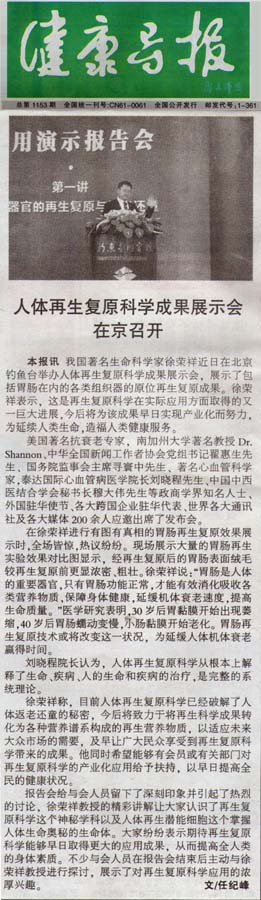 健康導(dǎo)報(bào):人體再生復(fù)原科學(xué)成果展示會(huì)在京召開