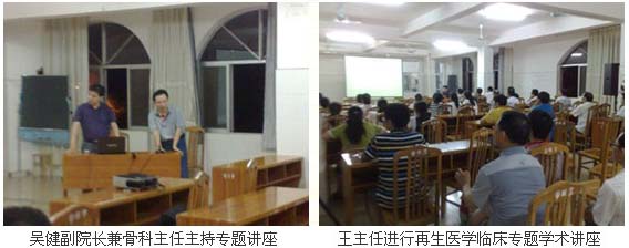 2011年8月10日,中國(guó)燒傷創(chuàng)瘍雜志副總編輯、中國(guó)中西醫(yī)結(jié)合學(xué)會(huì)燒傷專業(yè)委員會(huì)常委兼秘書、北京燒傷創(chuàng)瘍研究所副所長(zhǎng)、臨床研究部主任王洪生研究員應(yīng)隆安縣中醫(yī)醫(yī)院副院長(zhǎng)兼骨科主任吳健的邀請(qǐng),到該醫(yī)院進(jìn)行“再生復(fù)原療法在燒傷及難治性創(chuàng)傷、潰瘍創(chuàng)面治療臨床規(guī)范化應(yīng)用及新進(jìn)展”專題講座。