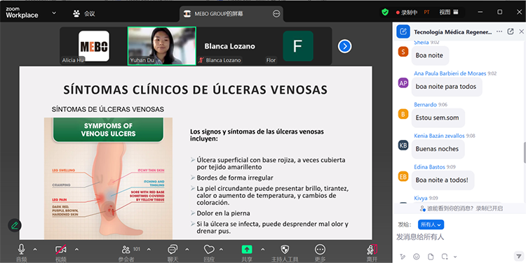 在專題研討環(huán)節(jié),美寶國(guó)際技術(shù)部講師杜鈺涵進(jìn)行了深度學(xué)術(shù)分享,從流行病學(xué)特征、病理生理機(jī)制、國(guó)際診斷標(biāo)準(zhǔn)到再生醫(yī)療技術(shù)的作用機(jī)理與臨床適應(yīng)癥,全方位構(gòu)建了靜脈潰瘍的防治知識(shí)體系。特別針對(duì)聯(lián)合治療方案優(yōu)化、典型病例分析及長(zhǎng)期預(yù)防策略等臨床痛點(diǎn),提供了基于循證醫(yī)學(xué)的解決方案。參會(huì)人員有來自巴西、秘魯、哥斯達(dá)黎加等不同拉美國(guó)家的醫(yī)生和學(xué)者們多達(dá)130人,大家在會(huì)議期間踴躍提問,諸如在應(yīng)用再生醫(yī)療技術(shù)期間對(duì)于傷口恢復(fù)的作用、慢性創(chuàng)面的病因與再生醫(yī)療技術(shù)的作用機(jī)制,慢性創(chuàng)面多病因分析與個(gè)體化治療策略等,提出的問題得到逐一解答,獲得與會(huì)者一致好評(píng)?,F(xiàn)場(chǎng)互動(dòng)熱烈,充分展現(xiàn)了再生醫(yī)療技術(shù)在慢性創(chuàng)面治療領(lǐng)域的突破性價(jià)值與國(guó)際認(rèn)可度。
