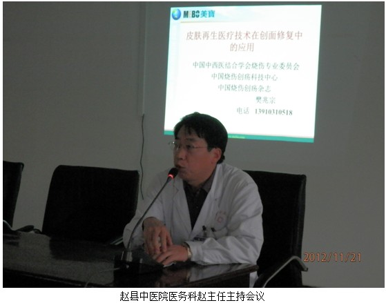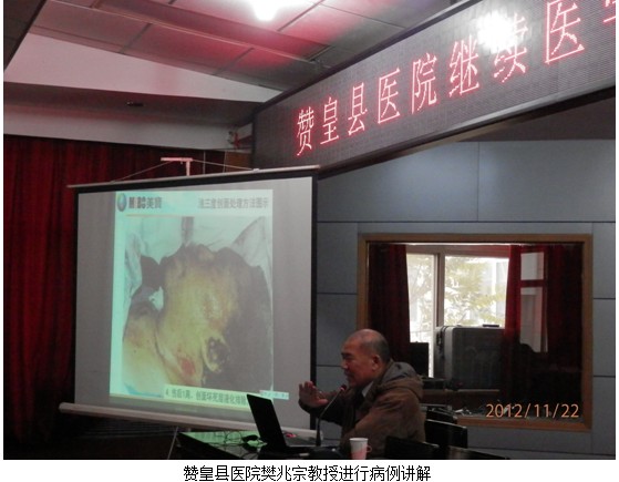 2012年11月21日至22日,中國(guó)中西醫(yī)結(jié)合學(xué)會(huì)燒傷專業(yè)委員會(huì)委員、《中國(guó)燒傷創(chuàng)瘍雜志》編委樊兆宗教授應(yīng)邀分別于河北省趙縣中醫(yī)院和河北省贊皇縣醫(yī)院進(jìn)行授課。