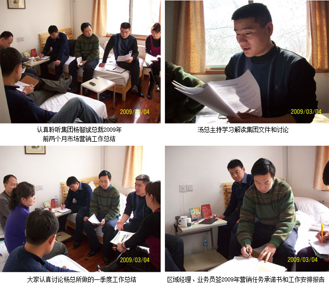 山東地方美寶湯總裁主持了本省會議。他組織并向工作人員解讀了關(guān)于09年醫(yī)藥集團(tuán)市場管理文件匯編。而后大家一起進(jìn)行了認(rèn)真學(xué)習(xí)和討論,在討論中湯總裁要求各區(qū)域經(jīng)理、業(yè)務(wù)員積極行動起來,落實一對一、面對面的經(jīng)營開發(fā)理念,確保2009年上半年任務(wù)落到實處,做到時間過半完成任務(wù)過半。他要求大家要有全年一盤棋思想,有計劃、有目的地完成各時間段的任務(wù),這樣才能保證全年各項工作順利完成。最后湯總根據(jù)會議精神和楊所指示,結(jié)合山東的實際情況進(jìn)行了具體細(xì)致的工作安排。