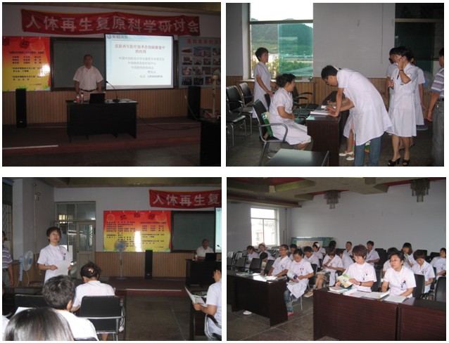 會(huì)議由清原縣中醫(yī)院朱建明科長(zhǎng)主持,該院具有較好的學(xué)術(shù)氣氛,院內(nèi)各科室主任、醫(yī)生、護(hù)士長(zhǎng)37人參加報(bào)告會(huì),報(bào)告中醫(yī)護(hù)人員認(rèn)真聆聽(tīng)兼做筆記,不時(shí)還有疑問(wèn)提出,說(shuō)明了他們對(duì)再生技術(shù)先進(jìn)性、可操作性、方法簡(jiǎn)單易行產(chǎn)生了理性的認(rèn)識(shí),尤其對(duì)斷指再生表現(xiàn)出驚呀、贊許及些許的疑問(wèn),說(shuō)明了教學(xué)普及知識(shí)培訓(xùn)的可行性在基層單位尤為重要。報(bào)告結(jié)束后感染科主任、消化內(nèi)科主任、肛腸科主任紛紛提出問(wèn)題、普外科就皮膚疤痕問(wèn)題同樊教授進(jìn)行了廣范深入的探討,他們均得到了滿(mǎn)意答復(fù),這次學(xué)術(shù)報(bào)告會(huì)圓滿(mǎn)結(jié)束。