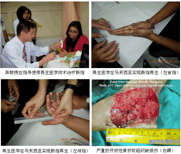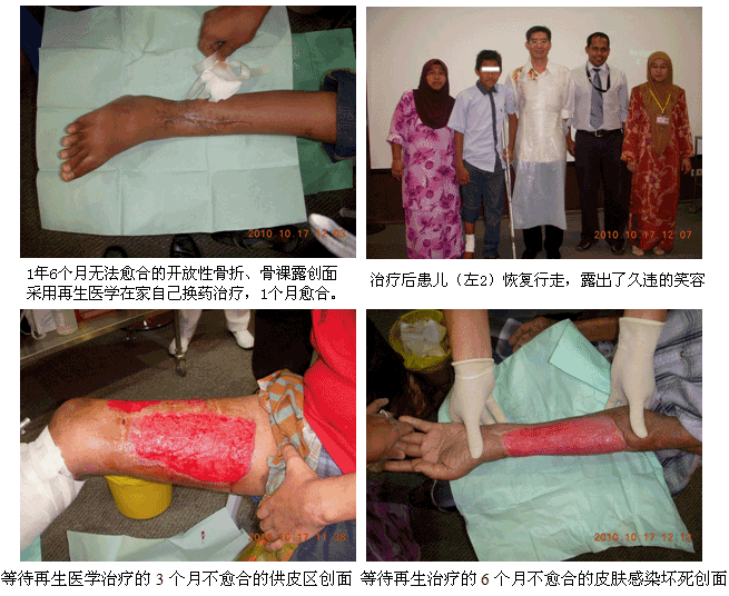 自從再生醫(yī)學(xué)學(xué)術(shù)演講在今年年7月在馬來西亞Kuching舉辦的亞太估計(jì)整形大會上引起轟動(dòng)和強(qiáng)烈反響后,再生醫(yī)學(xué)的學(xué)術(shù)地位和影響力在亞太地區(qū),特別是在馬來西亞得到了明顯提升。為了發(fā)揮出學(xué)術(shù)的優(yōu)勢,趁熱打鐵在馬來西亞推廣再生醫(yī)學(xué)技術(shù),2010年10月10日至29日,馬來西亞今年的第三輪醫(yī)療開發(fā)與維護(hù)工作順利展開,收效顯著。在20天的時(shí)間里,先后舉辦了州級(省級)培訓(xùn)班2期,院級培訓(xùn)班7期,培訓(xùn)了燒傷、整形、普通外科、骨科、內(nèi)科的醫(yī)師和護(hù)士580余名;對 5家老基地醫(yī)院的臨床應(yīng)用與技術(shù)規(guī)范進(jìn)行了有效的維護(hù)、推進(jìn)和提高;成功新開發(fā)了4家新的大型政府教學(xué)醫(yī)院和1家大學(xué)醫(yī)院;會診、指導(dǎo)30多例危重疑難病例的救治[燒傷7例(特重度燒傷2例),創(chuàng)傷13例,慢性潰瘍11例,皮膚病1例,等],醫(yī)療開發(fā)與維護(hù)齊頭并進(jìn)。