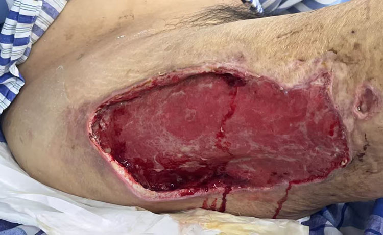 11月11日,北京榮祥再生醫(yī)學(xué)研究所研究員、《中國燒傷創(chuàng)瘍雜志》常務(wù)編委、燒傷創(chuàng)瘍再生醫(yī)療技術(shù)臨床專家趙瑞慶教授,到長治市人民醫(yī)院會(huì)診手術(shù)創(chuàng)傷患者。長治某洗煤廠裝載機(jī)車禍雙下肢嚴(yán)重碾軋傷患者,經(jīng)過積極的抗感染、創(chuàng)面通過再生醫(yī)療技術(shù)聯(lián)合多技術(shù)處理準(zhǔn)備,達(dá)到手術(shù)要求,趙瑞慶教授會(huì)同當(dāng)?shù)蒯t(yī)務(wù)人員李學(xué)雷主任團(tuán)隊(duì)等,在全麻下行“雙下肢嚴(yán)重皮膚缺損創(chuàng)面修復(fù)手術(shù)”術(shù)中順利,出血不多,病人安返病區(qū)。術(shù)后又制定了嚴(yán)格的治療措施。