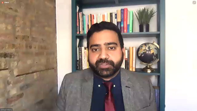 芝加哥大學徐鵬智庫主任Abhilash Mishra 博士代表徐鵬智庫及美寶國際發(fā)言,以徐鵬智庫在重鑄公眾對科學的信任方面所提供的重要策略及核心方案為基礎講述了新冠疫情下科學面臨的重大危機與挑戰(zhàn),講述了平等性、包容性、開放性對科學發(fā)展的重要意義,特別強調了跨越邊際的國際合作對科學創(chuàng)新的重要價值。