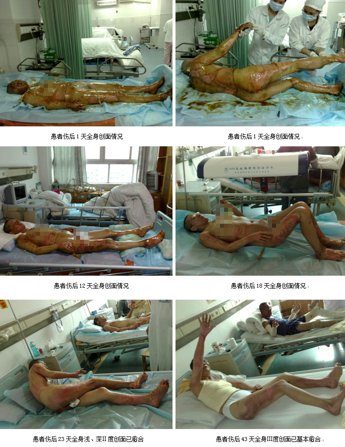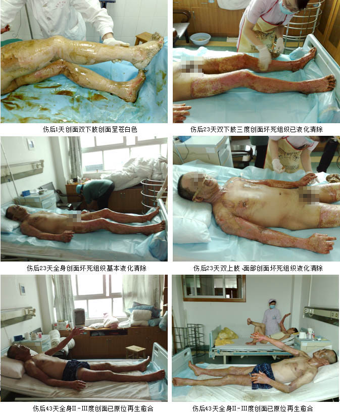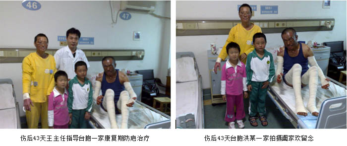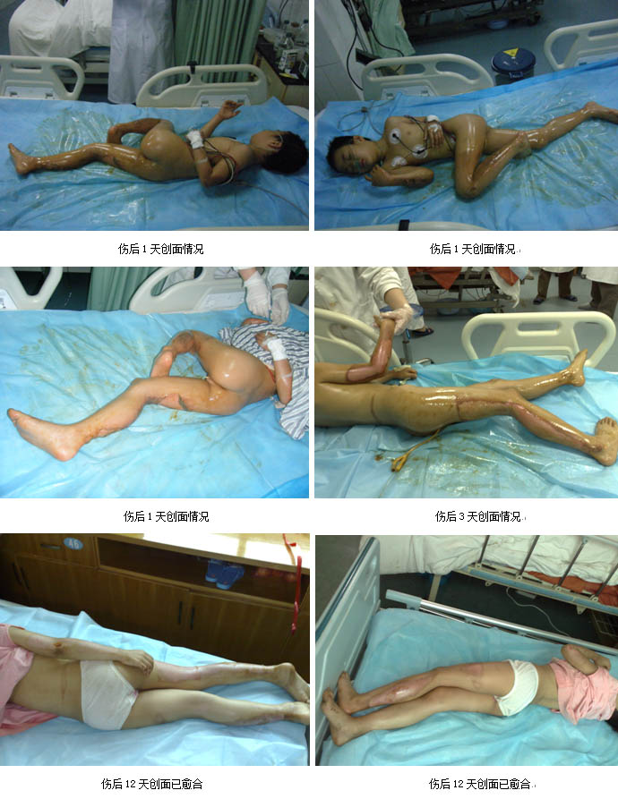 2009年2月26日7時(shí)30分,一聲巨響打破了廣州市花都區(qū)某住宅小區(qū)清晨的寧?kù)o,住在該小區(qū)的臺(tái)胞洪某家中因煤氣泄漏突發(fā)爆炸,洪某本人以及妻子、兒子和女兒一家四口大面積嚴(yán)重?zé)齻?BR>      傷后一小時(shí),臺(tái)胞洪某一家四口先后被急診轉(zhuǎn)入廣州市中西醫(yī)結(jié)合醫(yī)院ICU病房救治。入院診斷:患者洪某為大面積深度燒傷合并爆震傷生命垂危、兒子為大面積燒傷病情危重、妻子金某為重度燒傷、女兒為中度燒傷。該批患者入住ICU病房后,ICU的醫(yī)護(hù)人員立即為每位患者建立了有效的靜脈輸液通道,快速靜滴平衡鹽溶液,進(jìn)行有效的容量復(fù)蘇抗休克等生命支持措施,創(chuàng)面處理采用目前處于國(guó)際領(lǐng)先水平的,由我國(guó)著名生命科學(xué)家徐榮祥教授發(fā)明的燒傷皮膚原位再生復(fù)原技術(shù)。為確保對(duì)這批臺(tái)胞大面積嚴(yán)重?zé)齻颊叩某晒戎?,該院于收治病人的?dāng)日上午成立了以主管副院長(zhǎng)劉樹華副主任醫(yī)師為組長(zhǎng),大外科主任張向東副主任醫(yī)師為副組長(zhǎng),燒傷外科、ICU等相關(guān)科室專家組成的搶救小組,負(fù)責(zé)這一家四口臺(tái)胞的救治工作。另外為了確保救治的成功,劉樹華副院長(zhǎng)立即與中國(guó)中西醫(yī)結(jié)合學(xué)會(huì)燒傷專委會(huì)常委、北京燒傷創(chuàng)瘍研究所副所長(zhǎng)、臨床部主任王洪生研究員電話聯(lián)系,請(qǐng)求其親臨該院指導(dǎo)該批臺(tái)胞的救治工作。在王洪生主任的全程臨床指導(dǎo)下,經(jīng)過廣州市中西醫(yī)結(jié)合醫(yī)院燒傷外科及全院相關(guān)科室醫(yī)護(hù)人員夜以繼日的精心治療,臺(tái)胞洪某一家四口順利渡過休克、感染關(guān),受傷最重的洪某也闖過ARDS關(guān),轉(zhuǎn)危為安,淺Ⅱ度、深Ⅱ度、淺Ⅲ度創(chuàng)面已原位再生復(fù)原(愈合)。目前臺(tái)胞洪某一家四口已順利康復(fù),洪某及妻子正在廣州市中西醫(yī)結(jié)合醫(yī)院燒傷外科進(jìn)行康復(fù)期防疤治療,兒子及女兒已正常到學(xué)校上課。臺(tái)胞洪某和其單位領(lǐng)導(dǎo)都感慨的說,全家因煤氣爆炸燒傷險(xiǎn)些家破人亡是不幸的,但全家又受益于燒傷皮膚原位再生復(fù)原技術(shù)而轉(zhuǎn)危為安,目前闔家歡樂,真是不幸中的萬(wàn)幸。