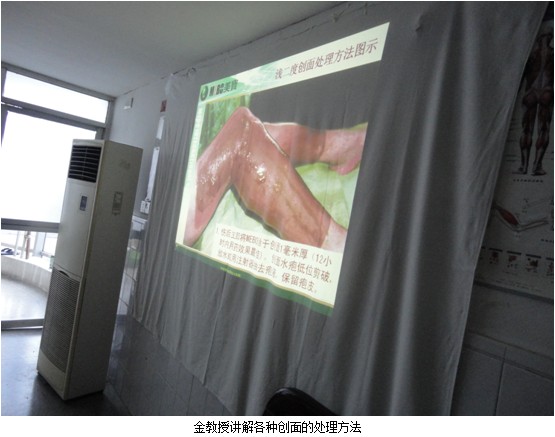 培訓(xùn)結(jié)束后,在醫(yī)務(wù)科陳科長的陪同下,金主任為該院外科病區(qū)住院病人會診。并為患者進行現(xiàn)場皮膚原位再生復(fù)原技術(shù)規(guī)范換藥指導(dǎo),強化講解了再生技術(shù)應(yīng)用特點和臨床規(guī)范操作的重要意義。