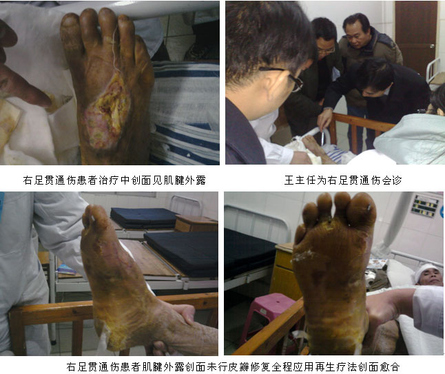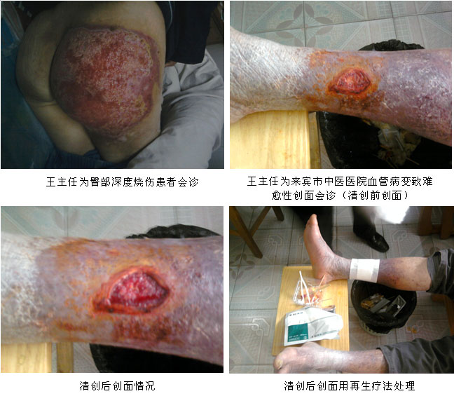 另外,在廣西與各醫(yī)院技術(shù)交流期間,王主任還于2011年1月16日應(yīng)來賓市中醫(yī)醫(yī)院周國榮院長的邀請,到該醫(yī)院為一例下肢血管病變造成的一例難愈性潰瘍創(chuàng)面患者進行了會診和指導(dǎo)。