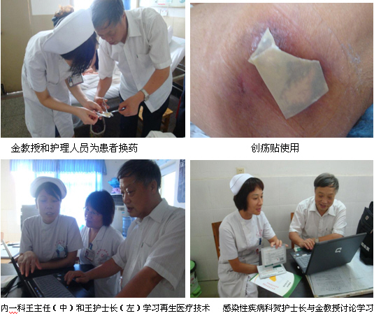 8月10日,金教授走訪了當(dāng)陽市人民醫(yī)院,該院始建于1949年,座落在三國古戰(zhàn)場長坂坡下,是當(dāng)陽市集醫(yī)療、教學(xué)、科研于一體的規(guī)模最大的綜合性醫(yī)院、當(dāng)陽市醫(yī)療護(hù)理技術(shù)指導(dǎo)中心、急救中心、國家二級(jí)甲等醫(yī)院、愛嬰醫(yī)院、國際緊急救援網(wǎng)絡(luò)醫(yī)院。醫(yī)院占地35422平方米,開放病床328張,近8年連續(xù)被省計(jì)統(tǒng)計(jì)局授予“湖北省醫(yī)院系統(tǒng)百強(qiáng)單位”、宜昌市雙文明單位、宜昌市示范醫(yī)院、當(dāng)陽市雙文明單位、十星級(jí)單位、花園式單位。達(dá)到了“人有專長、科有重點(diǎn),院有特色”的現(xiàn)代化縣(市)級(jí)醫(yī)院格局。金教授走訪該院心內(nèi)科時(shí),王桂芳護(hù)士長正給一患者使用美寶創(chuàng)瘍貼換藥,該患者患有椎盤壓縮性骨折,左右骶棘處潰瘍,不易翻身。王桂芳護(hù)士長向金教授介紹該患治療前潰瘍面較深,在應(yīng)用創(chuàng)瘍貼治療后,目前新鮮的肉芽組織已完美呈現(xiàn)眼前,在場的醫(yī)生無不感嘆創(chuàng)瘍貼良好的治療效果。隨后,金教授通過幻燈片向心內(nèi)科王護(hù)士長和科室王主任,感染性疾病科賀護(hù)士長全面地介紹了再生醫(yī)療技術(shù)在褥瘡、創(chuàng)傷、潰瘍等創(chuàng)面的臨床應(yīng)用。王護(hù)士長也就臨床中遇到的一些問題與金教授進(jìn)行了深入地交流,并表示以后會(huì)將這項(xiàng)好技術(shù)在科室進(jìn)一步推廣應(yīng)用,造福更多患者。