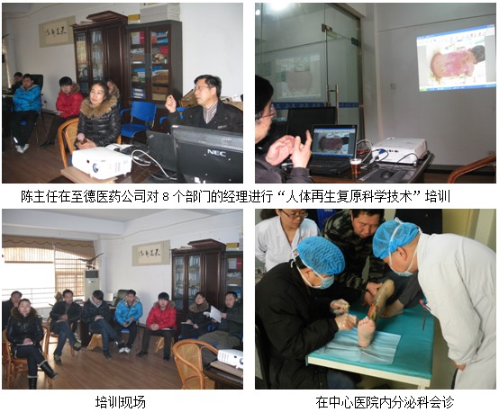 2013年元月18號下午2點,中國中西醫(yī)結(jié)合學(xué)會燒傷專業(yè)委員會委員陳全喜主任醫(yī)師在新鄉(xiāng)市至德醫(yī)藥公司對8個部門的經(jīng)理進行了“人體皮膚原位再生醫(yī)療”技術(shù)的培訓(xùn)。