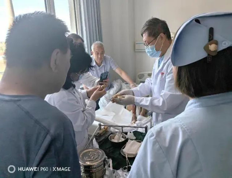 2023年6月27日,《中國燒傷創(chuàng)瘍雜志》編委、燒傷創(chuàng)瘍再生醫(yī)療技術(shù)臨床專家張強(qiáng),應(yīng)銅陵市人民醫(yī)院邀請,前往醫(yī)院會(huì)診多例壓創(chuàng)患者,對患者創(chuàng)面進(jìn)行檢查,指導(dǎo)示范換藥,并詳細(xì)講解進(jìn)一步治療方案,受到醫(yī)院領(lǐng)導(dǎo)和患者家屬的高度認(rèn)可。