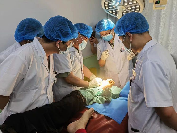 2023年6月28日,《中國燒傷創(chuàng)瘍雜志》編委、燒傷創(chuàng)瘍再生醫(yī)療技術(shù)臨床專家張強(qiáng),應(yīng)邀前往鳳陽縣人民醫(yī)院,會(huì)診多例糖尿病足患者和潰瘍患者,對患者創(chuàng)面進(jìn)行檢查,指導(dǎo)規(guī)范換藥,同蔣主任及醫(yī)生共同探討創(chuàng)面治療,針對不同病情制定個(gè)性化治療方案,此次會(huì)診活動(dòng),得到醫(yī)院和患者的好評。