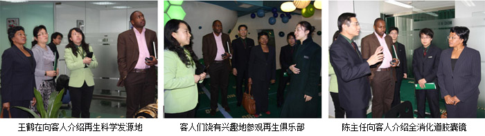 上午, Dr.Betty一行饒有興趣地參觀了人體組織器官原位再生復(fù)原俱樂部、全消化道膠囊鏡和中心實(shí)驗(yàn)室,現(xiàn)場聽取了技術(shù)人員對人體組織器官原位再生復(fù)原科學(xué)技術(shù)的詳細(xì)介紹。隨后,大家來到了集團(tuán)多功能會議廳進(jìn)行了簡單的商談后,負(fù)責(zé)非洲區(qū)域經(jīng)營的國際部的王晨光向客人們介紹了美寶國際集團(tuán)的整體情況,接著由組織器官再生醫(yī)學(xué)專家陳永翀主任介紹人體組織器官原位再生復(fù)原科學(xué)技術(shù)。在講解過程中,陳主任采用圖文并茂的方式,展示了燒傷皮膚原位再生復(fù)原技術(shù)的臨床治療效果和人體各個(gè)組織器官原位再生復(fù)原在老齡人和最晚期癌癥患者身上所取得的驚人結(jié)果,同時(shí)深入淺出的講解人體組織器官原位再生復(fù)原技術(shù)的科學(xué)理論。Dr. Betty 院長一行深深地被再生醫(yī)學(xué)科學(xué)的研究成果所震驚,也被神奇的臨床治療效果所折服,并表示希望盡快引進(jìn)該項(xiàng)先進(jìn)技術(shù)的強(qiáng)烈意愿