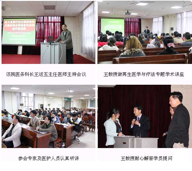 來(lái)自該院外科、骨科、內(nèi)科、護(hù)理等近100余醫(yī)護(hù)人員參加了此次培訓(xùn)。會(huì)議由醫(yī)務(wù)科王運(yùn)武科長(zhǎng)主持。在兩個(gè)多小時(shí)的講座中,王教授首先向與會(huì)醫(yī)護(hù)人員介紹了我國(guó)著名生命科學(xué)家、醫(yī)學(xué)家徐榮祥教授在人體再生復(fù)原科學(xué)領(lǐng)域取得的實(shí)驗(yàn)及臨床研究最新進(jìn)展,在2010年年底公布的“人體生命延續(xù)之謎(二)——線(xiàn)粒體主導(dǎo)日常生命”,破解了“精、氣、神、力”旺盛與人體啟動(dòng)了再生生命程序有關(guān),與細(xì)胞內(nèi)各主要細(xì)胞器功能的發(fā)揮有關(guān),并進(jìn)一步證實(shí)了一個(gè)生命體可以同時(shí)具有“基本生命”和“再生生命”等,然后王教授結(jié)合了大量的臨床病例資料,主要針對(duì)不同深度的燒傷創(chuàng)面及各類(lèi)難愈性創(chuàng)傷、潰瘍創(chuàng)面的規(guī)范化處理方法與技巧、注意事項(xiàng)等進(jìn)行了細(xì)致地講解,生動(dòng)的講說(shuō)和翔實(shí)的病例贏(yíng)得了在場(chǎng)醫(yī)務(wù)人員的熱烈掌聲。會(huì)后王主任還就學(xué)員們提出的問(wèn)題一一做了詳細(xì)地解答。會(huì)后各科領(lǐng)導(dǎo)表示將在臨床更加全面地推廣再生醫(yī)療技術(shù),為更多患者造福。