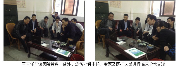 當(dāng)日下午3:00,王主任在該醫(yī)院外科辦公室進(jìn)行臨床學(xué)術(shù)交流,該醫(yī)院的燒傷科范志強(qiáng)主任及科室醫(yī)護(hù)人員10余人參加了講座會(huì)議。會(huì)后該醫(yī)院泌尿、燒傷外科主任范志強(qiáng)邀請(qǐng)王主任對(duì)在該科住院的多例燒傷患者進(jìn)行了會(huì)診和臨床指導(dǎo)。