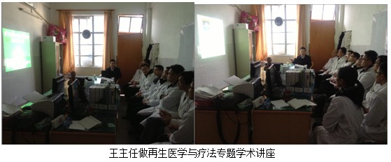 學(xué)術(shù)講座于當(dāng)日下午下午4:00在該醫(yī)院的外科主任辦公室召開(kāi)。該醫(yī)院的骨外科何平主任、普外科劉主任及其醫(yī)院各外科系統(tǒng)負(fù)責(zé)人及醫(yī)護(hù)人員10余人參加了講座會(huì)議。會(huì)中,王主任結(jié)合了大量的臨床病例圖片,主要針對(duì)燒傷、糖尿病足、褥瘡等各類難愈性創(chuàng)傷、潰瘍創(chuàng)面的規(guī)范化處理方法與技巧、注意事項(xiàng)等進(jìn)行了細(xì)致地講解。會(huì)議持續(xù)到下午近六點(diǎn),何主任表示再生療法在臨床上相對(duì)于他們來(lái)說(shuō),是一個(gè)全新的治療方法,他們都感到非常的信服,希望王主任以后再臨床上能多多的指導(dǎo),以更好的造福于患者。