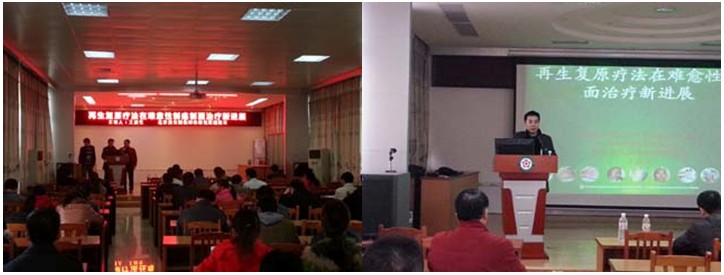 2013年1月24日,王主任應(yīng)蒼梧縣人民醫(yī)院的邀請(qǐng),到該醫(yī)院進(jìn)行 “再生復(fù)原療法在難愈性創(chuàng)瘍創(chuàng)面治療新進(jìn)展”專題臨床學(xué)術(shù)講座。