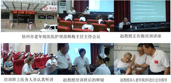 【2】7月19日下午趙教授在徐州市老年病醫(yī)院進(jìn)行全院護(hù)理人員開(kāi)展使用再生復(fù)原技術(shù)治療老年病合并皮膚潰瘍的培訓(xùn)。培訓(xùn)期間與護(hù)理人員進(jìn)行互動(dòng)答疑環(huán)節(jié)。會(huì)后趙教授深入老年病2科進(jìn)行會(huì)診指導(dǎo)。