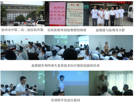 2012年7月下旬應(yīng)蘇北南京消防燒傷醫(yī)院、徐州老年病醫(yī)院、邳州中鐵二局二處醫(yī)院的邀請(qǐng),北京燒傷創(chuàng)瘍研究所趙瑞慶教授在蘇北再生復(fù)原技術(shù)推廣辦事處主任劉恒以及周銀梅的陪同下,分別在蘇北地區(qū)舉辦院級(jí)培訓(xùn)班兩期,科內(nèi)培訓(xùn)班一期,受到了當(dāng)?shù)蒯t(yī)務(wù)人員的一致好評(píng)。