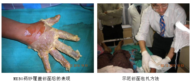 A、試驗(yàn)組(MEBO組)病例創(chuàng)面處理操作示范:
