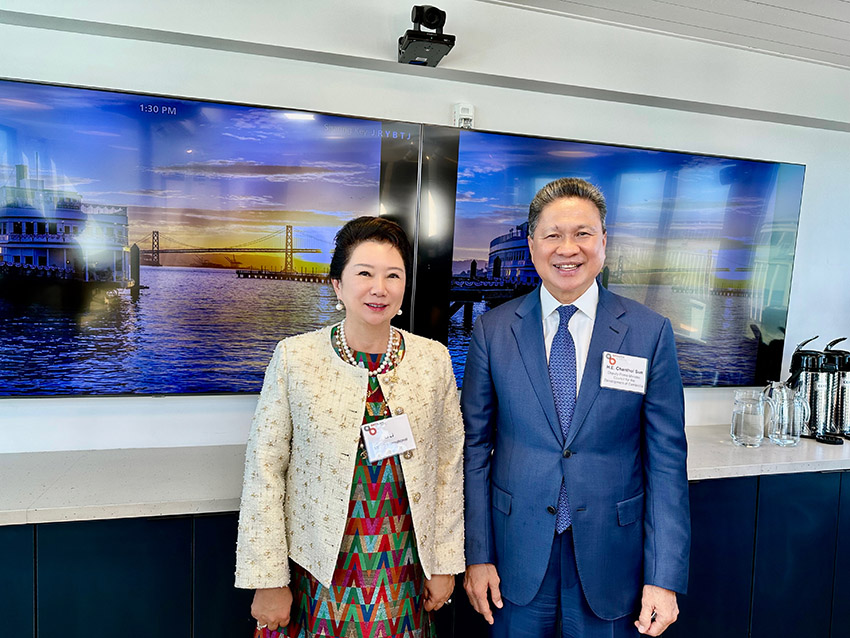 2024年9月23日正午時(shí)分,加州灣區(qū)委員會在位于其總部克拉馬斯號(Klamath)頂層美寶花園的主會議室內(nèi),以一場溫馨而莊重的午餐會,熱情接待了柬埔寨副首相孫占托閣下率領(lǐng)的代表團(tuán)一行。美寶集團(tuán)董事局李俐代表董事長徐鵬(灣區(qū)委員會執(zhí)行董事兼國際委員會主席)與灣區(qū)委員會經(jīng)濟(jì)研究院院長肖恩·倫道夫作為東道主共同主持接待了代表團(tuán)一行,展現(xiàn)了灣區(qū)委員會對國際伙伴關(guān)系的重視與期待。