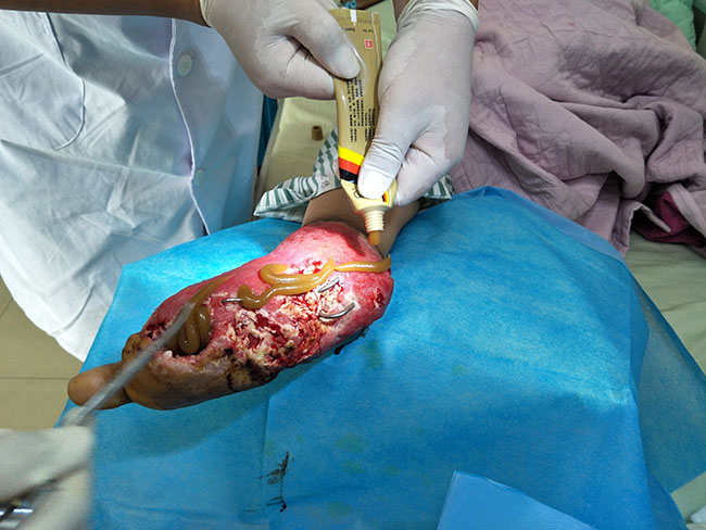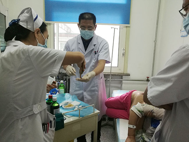 7月16日上午,應(yīng)天津市人民醫(yī)院邀請(qǐng),燒傷創(chuàng)瘍?cè)偕t(yī)療專家、中國(guó)中西醫(yī)結(jié)合學(xué)會(huì)燒傷專業(yè)委員會(huì)常務(wù)委員王洪生到血管外科會(huì)診幾例難愈合創(chuàng)面患者,現(xiàn)場(chǎng)示范并指導(dǎo)醫(yī)生使用再生技術(shù)換藥。天津市人民醫(yī)院血管外科受劉主任表示,希望今后雙方加強(qiáng)合作,讓更多患者受益!