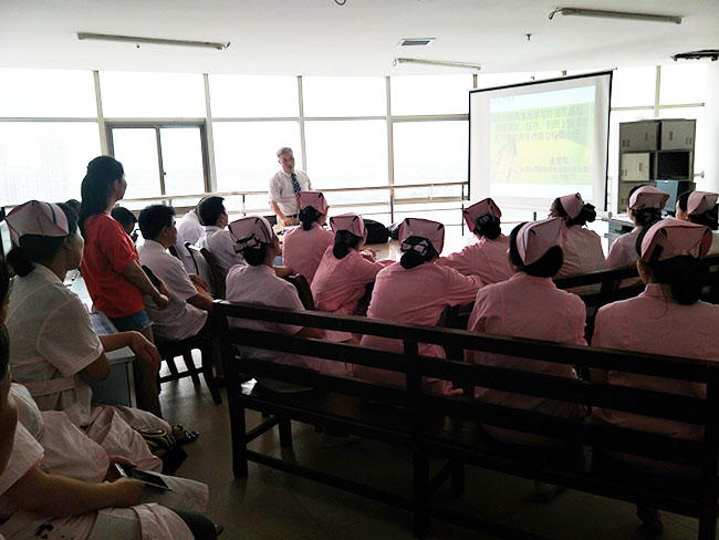 7月9日,燒傷創(chuàng)瘍?cè)偕t(yī)療專家、中國(guó)中西醫(yī)結(jié)合學(xué)會(huì)燒傷專業(yè)委員會(huì)常務(wù)委員王洪生受湛江市第二人民醫(yī)院邀請(qǐng),對(duì)全院護(hù)士長(zhǎng)及壓瘡護(hù)理小組進(jìn)行再生醫(yī)療技術(shù)對(duì)糖尿病足潰瘍及四級(jí)壓瘡治療培訓(xùn),進(jìn)一步提升該院再生醫(yī)療技術(shù)在糖尿病足領(lǐng)域的應(yīng)用規(guī)范;同時(shí)應(yīng)湛江市第四人民醫(yī)院老年科邀請(qǐng),對(duì)全科室醫(yī)生,護(hù)士26人就再生醫(yī)療技術(shù)在糖尿病足潰瘍、四期壓瘡創(chuàng)面處理要點(diǎn)進(jìn)行專題臨床技術(shù)培訓(xùn),并應(yīng)邀為該科收治1例Wagner4級(jí)糖尿病足多發(fā)潰瘍并感染的患者進(jìn)行了會(huì)診。