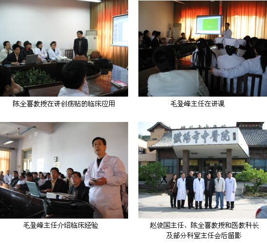 培訓(xùn)班結(jié)束后,趙俊國主任、李靈敏主任與醫(yī)生們針對創(chuàng)瘍貼在外科臨床的應(yīng)用情況進行了深入的交流,并合影留念。該院領(lǐng)導(dǎo)表示希望以后陳全喜教授等一行與該院加強業(yè)務(wù)聯(lián)系,每年召開一次再生醫(yī)療技術(shù)培訓(xùn)班,進一步提高該院的再生醫(yī)療技術(shù)水平。