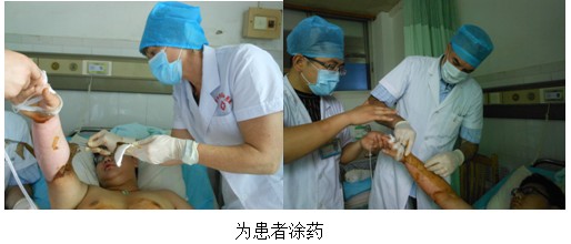 5月18號在前兩天學(xué)習(xí)參觀基礎(chǔ)之上,新西蘭一行人終于開始了再生醫(yī)療技術(shù)的實踐。在劉大夫的指導(dǎo)下,新西蘭醫(yī)生護士迫不及待的開始了實踐操作,其中包括深二度創(chuàng)面換藥流程,創(chuàng)面清理標準流程,腐皮去除時機與方法,涂藥原則等,同時還包括糖尿病足創(chuàng)面換藥流程,注意事項等操作規(guī)范。在此期間又參觀了新入院金屬熱液大面積燙傷患者的初期處理包括深度創(chuàng)面的耕耘減張術(shù)等常規(guī)處理原則。通過實踐醫(yī)生護士更深刻的體會到了再生醫(yī)療技術(shù)在減輕患者痛苦與經(jīng)濟負擔(dān)方面的優(yōu)越性與治療難愈性創(chuàng)面的獨特性等優(yōu)點。