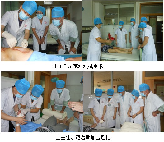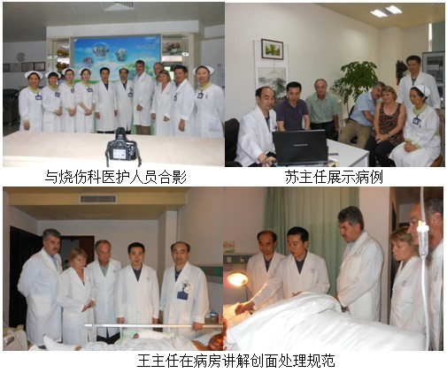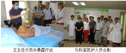 5月21號一行人在中國中西醫(yī)結(jié)合學(xué)會燒傷專業(yè)委員會主任委員,北京燒傷創(chuàng)瘍研究所副所長,中國燒傷創(chuàng)瘍雜志社常務(wù)副主編王洪生教授的帶領(lǐng)下進行了進一步的學(xué)習(xí),王教授不顧舟車勞頓親自為新西蘭醫(yī)生護士講解展示了不同創(chuàng)面的處理規(guī)范,注意事項并細心全面的回答了所有過程中提出的問題。