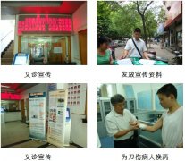 中國(guó)中西醫(yī)結(jié)合學(xué)會(huì)燒傷專業(yè)委員會(huì)常委、北京燒傷創(chuàng)瘍研究所臨床醫(yī)療部金黨軍教授應(yīng)湖南長(zhǎng)沙望月湖社區(qū)衛(wèi)生服務(wù)中心盛邀,于2009年6月28日—30日在望月湖社區(qū)服務(wù)中心進(jìn)行義診活動(dòng)。湖南辦事處望美玲和方昆鵬發(fā)放了宣傳資料,對(duì)家中有各種潰瘍和皮膚損傷的患者可前來就診,把再生醫(yī)療技術(shù)更好更快的普及到基層惠及到廣大群眾。