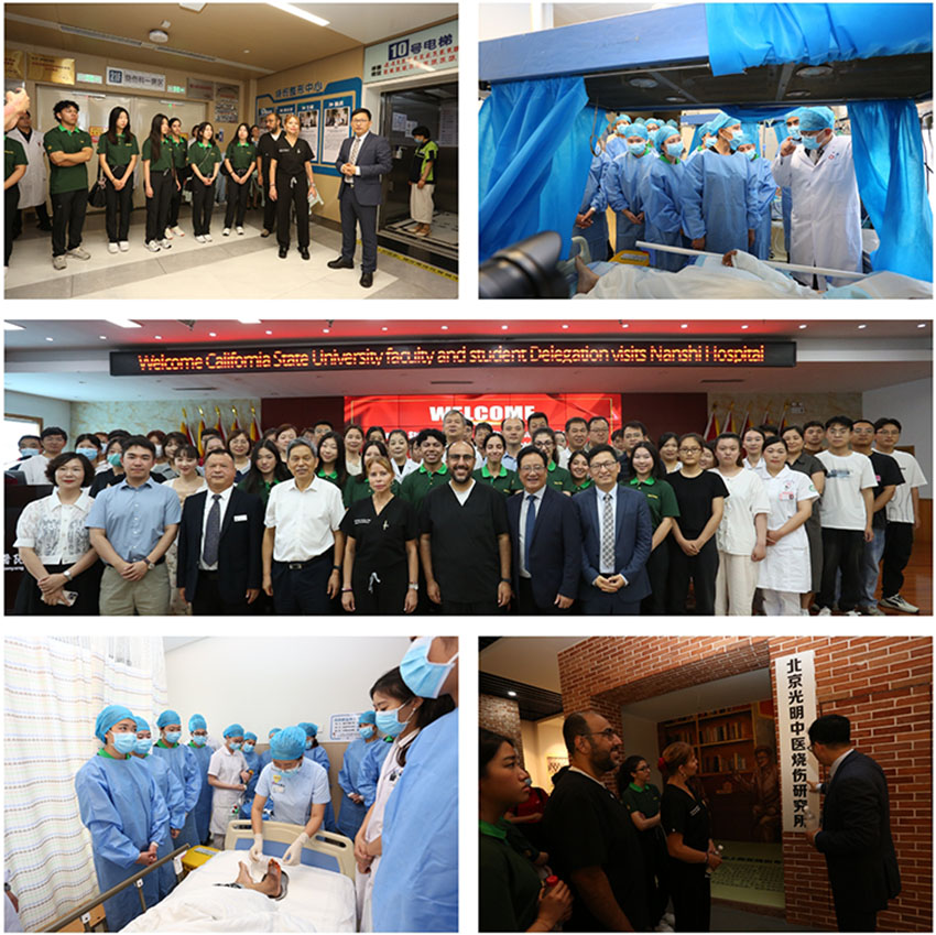 7月8日,師生團抵達北京,首先訪問了美寶集團總部,開展了學習交流會,分享了訪學期間的所學與心得。美寶集團總裁楊智斌、副總裁陳寶琪等進行了熱情接待。隨后,前往北京市豐臺區(qū)中醫(yī)醫(yī)院(南苑醫(yī)院),南苑醫(yī)院院長王小年一行歡迎他們的到來,師生團與該院燒傷整形與創(chuàng)面修復科專家陳永翀就再生醫(yī)療技術(shù)的最新進展與應用展開了熱烈的學術(shù)對話。訪學團一行還參觀了病房、醫(yī)院中醫(yī)館,實地觀摩學習了各種創(chuàng)面的處理原則和方法。徐榮祥健康與公眾服務學院院長Dr. Ronald Vogel表示,此次訪學是一次難得的機會,希望大家珍惜并將再生醫(yī)療技術(shù)推廣應用到以后的護理實踐中去。這次訪問不僅拓寬了師生們的學術(shù)視野,也加深了他們對美寶文化的深刻認識。