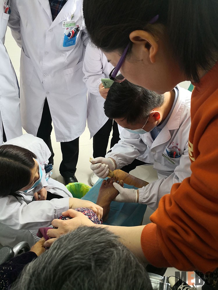 4月19日,中國中西醫(yī)結(jié)合學(xué)會醫(yī)療部張強主任應(yīng)邀來到銅陵市第二人民醫(yī)院對多例壓瘡患者進(jìn)行現(xiàn)場清創(chuàng)換藥示范,并指導(dǎo)再生醫(yī)療