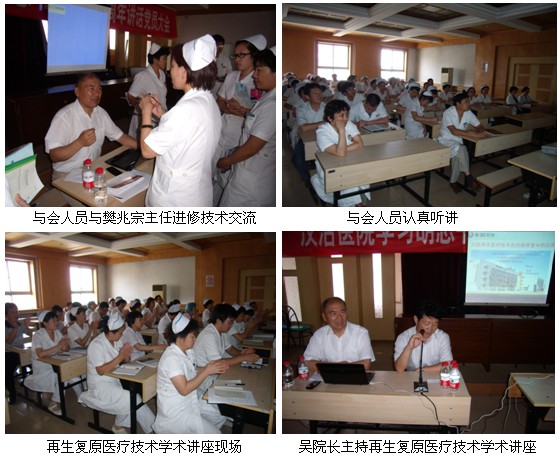 2011年8月3日,天津市漢沽區(qū)醫(yī)院特邀請了中國中西醫(yī)結(jié)合學(xué)會燒傷專業(yè)委員會、北京美寶燒傷創(chuàng)瘍研究所專家樊兆宗主任為該醫(yī)院骨傷科、外科、內(nèi)科、婦產(chǎn)科、感染科、護(hù)理部等17個科室共90名醫(yī)務(wù)人員進(jìn)行學(xué)術(shù)講座。吳院長主持了關(guān)于“人體再生復(fù)原醫(yī)療技術(shù)在多學(xué)科臨床應(yīng)用”學(xué)術(shù)講座的開辦儀式,隨后樊教授向大家介紹了徐教授發(fā)明創(chuàng)建的“人體再生復(fù)原醫(yī)療技術(shù)”及其“再生系列產(chǎn)品”的功能,并利用大量的臨床圖片資料和國內(nèi)、外臨床應(yīng)用再生復(fù)原醫(yī)療技術(shù)治療的真實病例,詳細(xì)地向大家講解了人體再生復(fù)原醫(yī)療技術(shù)治療各種難愈性創(chuàng)面、斷指再生的機理,對于各種燒傷的治療也做了重點介紹,另外還介紹了徐教授創(chuàng)立的人體再生復(fù)原醫(yī)療技術(shù)在各學(xué)科的應(yīng)用和研究,及各種創(chuàng)面?zhèn)囊?guī)范換藥流程、處理方法、注意事項及美寶產(chǎn)品在臨床應(yīng)用的療效。樊教授還對與會的醫(yī)生提出的問題給予了解答。此次學(xué)術(shù)講座深受醫(yī)務(wù)人員的歡迎,使醫(yī)院醫(yī)生對再生醫(yī)療技術(shù)有了更深刻地認(rèn)識,提高了醫(yī)生的醫(yī)療技術(shù)和治療水平,解決了醫(yī)生臨床遇到的難題。大家表示希望以后有更多機會接受再生復(fù)原醫(yī)療技術(shù)的專業(yè)培訓(xùn),更好地服務(wù)于更多患者。