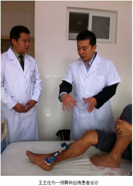 2012年11月16日上午,王主任應邀再次到該醫(yī)院外科,在該科韓新明主任、主管醫(yī)生董明林碩士等醫(yī)生陪同下為在該科住院的一例右小腿內(nèi)側骨科創(chuàng)瘍行筋膜瓣術后并筋膜瓣壞死患者進行了會診和臨床指導。