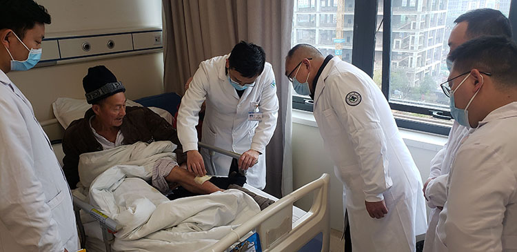 2023年2月24日,應(yīng)商洛市中醫(yī)醫(yī)院邀請,《中國燒傷創(chuàng)瘍雜志》總編、北京榮祥再生醫(yī)學(xué)研究所副所長、中國中西醫(yī)結(jié)合學(xué)會燒傷專業(yè)委員會秘書長、北京市中西醫(yī)結(jié)合學(xué)會燒傷專業(yè)委員會副主任委員方進(jìn)勇,中國中西醫(yī)結(jié)合學(xué)會燒傷專業(yè)委員會醫(yī)療部副主任宋小紅,陜西省中西醫(yī)結(jié)合學(xué)會燒傷與創(chuàng)面修復(fù)專委會常務(wù)秘書長劉華主任,前往醫(yī)院技術(shù)指導(dǎo)交流典型病例,李主任、張主任陪同專家到科室查房會診大面積燒傷和糖尿病足患者,確定治療方案。