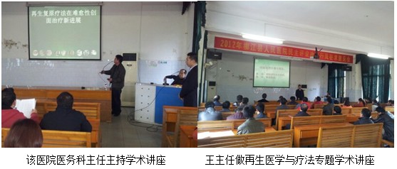 2012年12月6日,王主任應邀到廣西水電醫(yī)院進行 “再生療法在燒傷、難愈性創(chuàng)瘍創(chuàng)面治療新進展”專題臨床學術講座。該醫(yī)院原稱廣西水電工程局職工醫(yī)院,是隸屬于廣西水電工程局的一所企業(yè)辦綜合醫(yī)院,創(chuàng)建于1958年的春天(廣西橫縣西津電站)。四十多年來,它隨著廣西水電的建設發(fā)展,輾轉奔波于廣西各個水電施工工地上。1975年建設大化電站時,定址大化至今。醫(yī)院占地面積25畝 ,建筑面積 11351平方米 。床位定編145張。有職工155人,衛(wèi)技人員118人,其中副高級職稱8人,中級職稱56人。