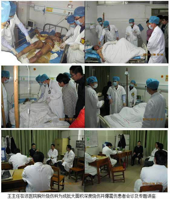 2012年12月8日早上,廣西貴港市平南縣人民醫(yī)院急診收治一批因大型氣罐爆炸致大面積深度燒沖復合傷(燒傷并爆震傷)患者,當日上午該醫(yī)院主管副院長兼胸外燒傷科主任臧德源緊急邀請王主任到該醫(yī)院為成批大面積深度燒傷合并爆震傷患者會診。該醫(yī)院創(chuàng)建于1935年,是一所集醫(yī)療、科研、教學、預防、保健、康復和社區(qū)衛(wèi)生服務于一體的綜合性縣(市)級醫(yī)院,是平南縣醫(yī)療業(yè)務技術指導中心,擔負著全縣130多萬人民的醫(yī)療保健任務。醫(yī)院設床位390張,年門急診量近36萬人次,住院病人1.6萬人次.現有職工624人,有碩士研究生4人,高級職稱14人,中級職稱221人。