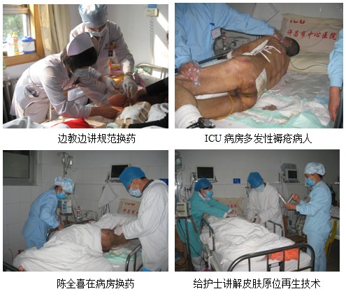 2011年11月7日上午,中國(guó)中西醫(yī)結(jié)合學(xué)會(huì)燒傷專業(yè)委員會(huì)委員,北京美寶燒傷創(chuàng)瘍研究所臨床部專家陳全喜受許昌市中心醫(yī)院ICU科主任陳建、內(nèi)分泌科主任刁建華的邀請(qǐng)會(huì)診兩位嚴(yán)重多發(fā)性壓瘡病人。